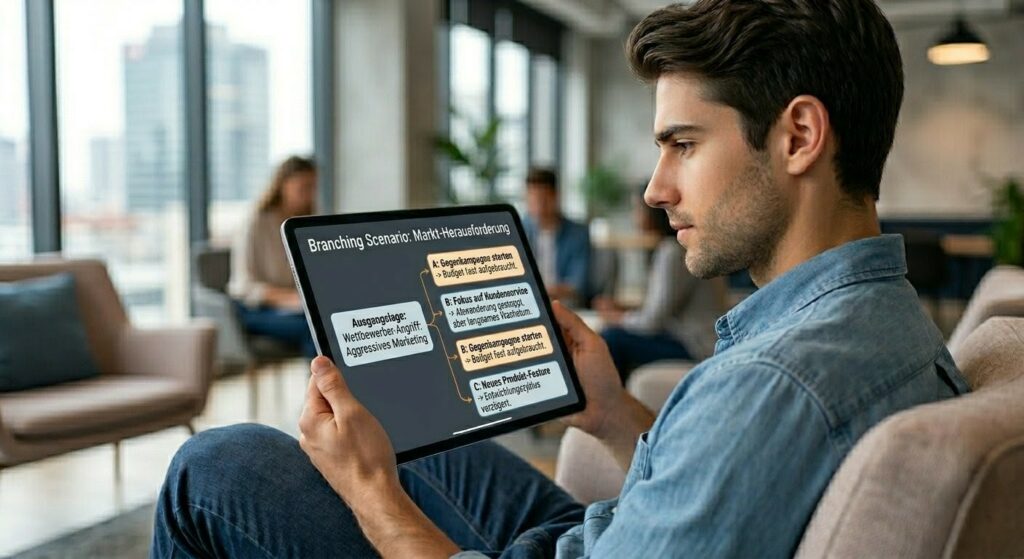 Zusätzlich verfügt Moodle über ein integriertes Badge-System. Diese digitalen Abzeichen sollten Sie gezielt für das Erreichen echter Meilensteine vergeben, um den Wert der Auszeichnung und damit die Motivation hochzuhalten. Für interaktive Inhalte bietet sich das Plugin H5P an. Besonders das Modul „Branching Scenario“ eignet sich perfekt für die inhaltliche Gamification, um Entscheidungsbäume und interaktive Fallstudien zu bauen, in denen die Lernenden die Konsequenzen ihres Handelns direkt erleben.